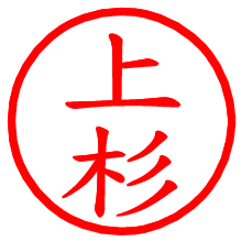 [朱肉の色]を選び、入力窓に“上杉”と入力して[生成]ボタンを押すと、印影が更新され、リンクから電子印鑑(デジタル印影)がダウンロードできます。 電子印鑑「上杉」の作り方文字表示が変なときや、文字バランスが悪いときは[字形切替]のチェックボックスでON/OFFを切り替え[生成]しなおしてください。 生成される画像は通常の印影「上杉.png」と、にじみを表現した少し太めの印影「上杉B.png」の背面透過PNG形式2種と、鮮明なPDF形式の印影「上杉.pdf」の計3種類です。 朱肉の微妙な色の違いを7色で表現しました。デフォルト(左端)は、JISが定めた朱肉の色のマンセル値(7.5R 5/14)をRGB値(217,66,54)に変換したものになっています。 「電子透かし」にチェックを入れて[生成]ボタンを押すと、タイムスタンプを透かしとして埋め込んだセキュアな電子印鑑が作れます。詳細は別ページの「電子透かしとタイムスタンプ」でご覧ください。 上杉さんの日付印が作れます。「日付スタンプメーカー」は、社内向けの書類に利用されることの多い日付印(データ印)が無料で作れるWebアプリケーションです。中段に日付が入り、上段と下段は、ともに8文字まで文字が入ります。 ![]() 古代文字で落款印が作れます。「落款スタンプメーカー」で作品を引き立たせる落款印が作れます。