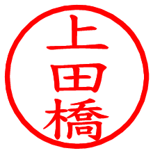 [朱肉の色]を選び、入力窓に“上田橋”と入力して[生成]ボタンを押すと、印影が更新され、リンクから電子印鑑(デジタル印影)がダウンロードできます。 電子印鑑「上田橋」の作り方文字表示が変なときや、文字バランスが悪いときは[字形切替]のチェックボックスでON/OFFを切り替え[生成]しなおしてください。 生成される画像は通常の印影「上田橋.png」と、にじみを表現した少し太めの印影「上田橋B.png」の背面透過PNG形式2種と、鮮明なPDF形式の印影「上田橋.pdf」の計3種類です。 朱肉の微妙な色の違いを7色で表現しました。デフォルト(左端)は、JISが定めた朱肉の色のマンセル値(7.5R 5/14)をRGB値(217,66,54)に変換したものになっています。 「電子透かし」にチェックを入れて[生成]ボタンを押すと、タイムスタンプを電子透かしとして埋め込んだセキュアな電子印鑑が作れます。詳細は別ページの「タイムスタンプと電子透かし」でご覧ください。 上田橋さんの日付印が作れます。「日付スタンプメーカー」は、社内向けの書類に利用されることの多い日付印(データ印)が無料で作れるWebアプリケーションです。中段に日付が入り、上段と下段は、ともに8文字まで文字が入ります。 ![]() 古代文字で落款印が作れます。「落款スタンプメーカー」で作品を引き立たせる落款印が作れます。
