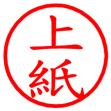 [朱肉の色]を選び、入力窓に“上紙”と入力して[生成]ボタンを押すと、印影が更新され、リンクから電子印鑑(デジタル印影)がダウンロードできます。 電子印鑑「上紙」の作り方文字表示が変なときや、文字バランスが悪いときは[字形切替]のチェックボックスでON/OFFを切り替え[生成]しなおしてください。 生成される画像は通常の印影「上紙.png」と、にじみを表現した少し太めの印影「上紙B.png」の背面透過PNG形式2種と、鮮明なPDF形式の印影「上紙.pdf」の計3種類です。 朱肉の微妙な色の違いを7色で表現しました。デフォルト(左端)は、JISが定めた朱肉の色のマンセル値(7.5R 5/14)をRGB値(217,66,54)に変換したものになっています。 「電子透かし」にチェックを入れて[生成]ボタンを押すと、タイムスタンプを電子透かしとして埋め込んだセキュアな電子印鑑が作れます。詳細は別ページの「タイムスタンプと電子透かし」でご覧ください。 上紙さんの日付印が作れます。「日付スタンプメーカー」は、社内向けの書類に利用されることの多い日付印(データ印)が無料で作れるWebアプリケーションです。中段に日付が入り、上段と下段は、ともに8文字まで文字が入ります。 ![]() 古代文字で落款印が作れます。「落款スタンプメーカー」で作品を引き立たせる落款印が作れます。