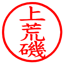 [朱肉の色]を選び、入力窓に“上荒磯”と入力して[生成]ボタンを押すと、印影が更新され、リンクから電子印鑑(デジタル印影)がダウンロードできます。 電子印鑑「上荒磯」の作り方文字表示が変なときや、文字バランスが悪いときは[字形切替]のチェックボックスでON/OFFを切り替え[生成]しなおしてください。 生成される画像は通常の印影「上荒磯.png」と、にじみを表現した少し太めの印影「上荒磯B.png」の背面透過PNG形式2種と、鮮明なPDF形式の印影「上荒磯.pdf」の計3種類です。 朱肉の微妙な色の違いを7色で表現しました。デフォルト(左端)は、JISが定めた朱肉の色のマンセル値(7.5R 5/14)をRGB値(217,66,54)に変換したものになっています。 「電子透かし」にチェックを入れて[生成]ボタンを押すと、タイムスタンプを電子透かしとして埋め込んだセキュアな電子印鑑が作れます。詳細は別ページの「タイムスタンプと電子透かし」でご覧ください。 上荒磯さんの日付印が作れます。「日付スタンプメーカー」は、社内向けの書類に利用されることの多い日付印(データ印)が無料で作れるWebアプリケーションです。中段に日付が入り、上段と下段は、ともに8文字まで文字が入ります。 ![]() 古代文字で落款印が作れます。「落款スタンプメーカー」で作品を引き立たせる落款印が作れます。