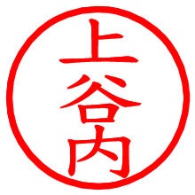 [朱肉の色]を選び、入力窓に“上谷内”と入力して[生成]ボタンを押すと、印影が更新され、リンクから電子印鑑(デジタル印影)がダウンロードできます。 電子印鑑「上谷内」の作り方文字表示が変なときや、文字バランスが悪いときは[字形切替]のチェックボックスでON/OFFを切り替え[生成]しなおしてください。 生成される画像は通常の印影「上谷内.png」と、にじみを表現した少し太めの印影「上谷内B.png」の背面透過PNG形式2種と、鮮明なPDF形式の印影「上谷内.pdf」の計3種類です。 朱肉の微妙な色の違いを7色で表現しました。デフォルト(左端)は、JISが定めた朱肉の色のマンセル値(7.5R 5/14)をRGB値(217,66,54)に変換したものになっています。 「電子透かし」にチェックを入れて[生成]ボタンを押すと、タイムスタンプを電子透かしとして埋め込んだセキュアな電子印鑑が作れます。詳細は別ページの「タイムスタンプと電子透かし」でご覧ください。 上谷内さんの日付印が作れます。「日付スタンプメーカー」は、社内向けの書類に利用されることの多い日付印(データ印)が無料で作れるWebアプリケーションです。中段に日付が入り、上段と下段は、ともに8文字まで文字が入ります。 ![]() 古代文字で落款印が作れます。「落款スタンプメーカー」で作品を引き立たせる落款印が作れます。