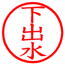 [朱肉の色]を選び、入力窓に“下出水”と入力して[生成]ボタンを押すと、印影が更新され、リンクから電子印鑑(デジタル印影)がダウンロードできます。 電子印鑑「下出水」の作り方文字表示が変なときや、文字バランスが悪いときは[字形切替]のチェックボックスでON/OFFを切り替え[生成]しなおしてください。 生成される画像は通常の印影「下出水.png」と、にじみを表現した少し太めの印影「下出水B.png」の背面透過PNG形式2種と、鮮明なPDF形式の印影「下出水.pdf」の計3種類です。 朱肉の微妙な色の違いを7色で表現しました。デフォルト(左端)は、JISが定めた朱肉の色のマンセル値(7.5R 5/14)をRGB値(217,66,54)に変換したものになっています。 「電子透かし」にチェックを入れて[生成]ボタンを押すと、タイムスタンプを電子透かしとして埋め込んだセキュアな電子印鑑が作れます。詳細は別ページの「タイムスタンプと電子透かし」でご覧ください。 下出水さんの日付印が作れます。「日付スタンプメーカー」は、社内向けの書類に利用されることの多い日付印(データ印)が無料で作れるWebアプリケーションです。中段に日付が入り、上段と下段は、ともに8文字まで文字が入ります。 ![]() 古代文字で落款印が作れます。「落款スタンプメーカー」で作品を引き立たせる落款印が作れます。