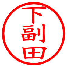 [朱肉の色]を選び、入力窓に“下副田”と入力して[生成]ボタンを押すと、印影が更新され、リンクから電子印鑑(デジタル印影)がダウンロードできます。 電子印鑑「下副田」の作り方文字表示が変なときや、文字バランスが悪いときは[字形切替]のチェックボックスでON/OFFを切り替え[生成]しなおしてください。 生成される画像は通常の印影「下副田.png」と、にじみを表現した少し太めの印影「下副田B.png」の背面透過PNG形式2種と、鮮明なPDF形式の印影「下副田.pdf」の計3種類です。 朱肉の微妙な色の違いを7色で表現しました。デフォルト(左端)は、JISが定めた朱肉の色のマンセル値(7.5R 5/14)をRGB値(217,66,54)に変換したものになっています。 「電子透かし」にチェックを入れて[生成]ボタンを押すと、タイムスタンプを電子透かしとして埋め込んだセキュアな電子印鑑が作れます。詳細は別ページの「タイムスタンプと電子透かし」でご覧ください。 下副田さんの日付印が作れます。「日付スタンプメーカー」は、社内向けの書類に利用されることの多い日付印(データ印)が無料で作れるWebアプリケーションです。中段に日付が入り、上段と下段は、ともに8文字まで文字が入ります。 ![]() 古代文字で落款印が作れます。「落款スタンプメーカー」で作品を引き立たせる落款印が作れます。