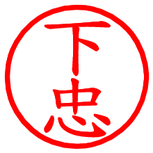 [朱肉の色]を選び、入力窓に“下忠”と入力して[生成]ボタンを押すと、印影が更新され、リンクから電子印鑑(デジタル印影)がダウンロードできます。 電子印鑑「下忠」の作り方文字表示が変なときや、文字バランスが悪いときは[字形切替]のチェックボックスでON/OFFを切り替え[生成]しなおしてください。 生成される画像は通常の印影「下忠.png」と、にじみを表現した少し太めの印影「下忠B.png」の背面透過PNG形式2種と、鮮明なPDF形式の印影「下忠.pdf」の計3種類です。 朱肉の微妙な色の違いを7色で表現しました。デフォルト(左端)は、JISが定めた朱肉の色のマンセル値(7.5R 5/14)をRGB値(217,66,54)に変換したものになっています。 「電子透かし」にチェックを入れて[生成]ボタンを押すと、タイムスタンプを電子透かしとして埋め込んだセキュアな電子印鑑が作れます。詳細は別ページの「タイムスタンプと電子透かし」でご覧ください。 下忠さんの日付印が作れます。「日付スタンプメーカー」は、社内向けの書類に利用されることの多い日付印(データ印)が無料で作れるWebアプリケーションです。中段に日付が入り、上段と下段は、ともに8文字まで文字が入ります。 ![]() 古代文字で落款印が作れます。「落款スタンプメーカー」で作品を引き立たせる落款印が作れます。