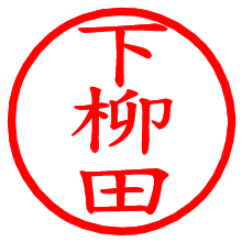[朱肉の色]を選び、入力窓に“下柳田”と入力して[生成]ボタンを押すと、印影が更新され、リンクから電子印鑑(デジタル印影)がダウンロードできます。 電子印鑑「下柳田」の作り方文字表示が変なときや、文字バランスが悪いときは[字形切替]のチェックボックスでON/OFFを切り替え[生成]しなおしてください。 生成される画像は通常の印影「下柳田.png」と、にじみを表現した少し太めの印影「下柳田B.png」の背面透過PNG形式2種と、鮮明なPDF形式の印影「下柳田.pdf」の計3種類です。 朱肉の微妙な色の違いを7色で表現しました。デフォルト(左端)は、JISが定めた朱肉の色のマンセル値(7.5R 5/14)をRGB値(217,66,54)に変換したものになっています。 「電子透かし」にチェックを入れて[生成]ボタンを押すと、タイムスタンプを透かしとして埋め込んだセキュアな電子印鑑が作れます。詳細は別ページの「電子透かしとタイムスタンプ」でご覧ください。  下柳田さんの日付印が作れます。「日付スタンプメーカー」は、社内向けの書類に利用されることの多い日付印(データ印)が無料で作れるWebアプリケーションです。中段に日付が入り、上段と下段は、ともに8文字まで文字が入ります。 ![]()  古代文字で落款印が作れます。「落款スタンプメーカー」で作品を引き立たせる落款印が作れます。