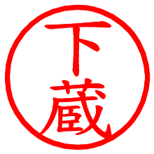 [朱肉の色]を選び、入力窓に“下蔵”と入力して[生成]ボタンを押すと、印影が更新され、リンクから電子印鑑(デジタル印影)がダウンロードできます。 電子印鑑「下蔵」の作り方文字表示が変なときや、文字バランスが悪いときは[字形切替]のチェックボックスでON/OFFを切り替え[生成]しなおしてください。 生成される画像は通常の印影「下蔵.png」と、にじみを表現した少し太めの印影「下蔵B.png」の背面透過PNG形式2種と、鮮明なPDF形式の印影「下蔵.pdf」の計3種類です。 朱肉の微妙な色の違いを7色で表現しました。デフォルト(左端)は、JISが定めた朱肉の色のマンセル値(7.5R 5/14)をRGB値(217,66,54)に変換したものになっています。 「電子透かし」にチェックを入れて[生成]ボタンを押すと、タイムスタンプを電子透かしとして埋め込んだセキュアな電子印鑑が作れます。詳細は別ページの「タイムスタンプと電子透かし」でご覧ください。 下蔵さんの日付印が作れます。「日付スタンプメーカー」は、社内向けの書類に利用されることの多い日付印(データ印)が無料で作れるWebアプリケーションです。中段に日付が入り、上段と下段は、ともに8文字まで文字が入ります。 ![]() 古代文字で落款印が作れます。「落款スタンプメーカー」で作品を引き立たせる落款印が作れます。
