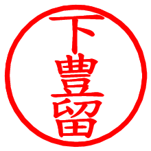 [朱肉の色]を選び、入力窓に“下豊留”と入力して[生成]ボタンを押すと、印影が更新され、リンクから電子印鑑(デジタル印影)がダウンロードできます。 電子印鑑「下豊留」の作り方文字表示が変なときや、文字バランスが悪いときは[字形切替]のチェックボックスでON/OFFを切り替え[生成]しなおしてください。 生成される画像は通常の印影「下豊留.png」と、にじみを表現した少し太めの印影「下豊留B.png」の背面透過PNG形式2種と、鮮明なPDF形式の印影「下豊留.pdf」の計3種類です。 朱肉の微妙な色の違いを7色で表現しました。デフォルト(左端)は、JISが定めた朱肉の色のマンセル値(7.5R 5/14)をRGB値(217,66,54)に変換したものになっています。 「電子透かし」にチェックを入れて[生成]ボタンを押すと、タイムスタンプを電子透かしとして埋め込んだセキュアな電子印鑑が作れます。詳細は別ページの「タイムスタンプと電子透かし」でご覧ください。 下豊留さんの日付印が作れます。「日付スタンプメーカー」は、社内向けの書類に利用されることの多い日付印(データ印)が無料で作れるWebアプリケーションです。中段に日付が入り、上段と下段は、ともに8文字まで文字が入ります。 ![]() 古代文字で落款印が作れます。「落款スタンプメーカー」で作品を引き立たせる落款印が作れます。