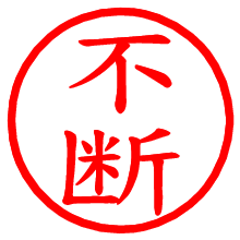 [朱肉の色]を選び、入力窓に“不断”と入力して[生成]ボタンを押すと、印影が更新され、リンクから電子印鑑(デジタル印影)がダウンロードできます。 電子印鑑「不断」の作り方文字表示が変なときや、文字バランスが悪いときは[字形切替]のチェックボックスでON/OFFを切り替え[生成]しなおしてください。 生成される画像は通常の印影「不断.png」と、にじみを表現した少し太めの印影「不断B.png」の背面透過PNG形式2種と、鮮明なPDF形式の印影「不断.pdf」の計3種類です。 朱肉の微妙な色の違いを7色で表現しました。デフォルト(左端)は、JISが定めた朱肉の色のマンセル値(7.5R 5/14)をRGB値(217,66,54)に変換したものになっています。 「電子透かし」にチェックを入れて[生成]ボタンを押すと、タイムスタンプを電子透かしとして埋め込んだセキュアな電子印鑑が作れます。詳細は別ページの「タイムスタンプと電子透かし」でご覧ください。 不断さんの日付印が作れます。「日付スタンプメーカー」は、社内向けの書類に利用されることの多い日付印(データ印)が無料で作れるWebアプリケーションです。中段に日付が入り、上段と下段は、ともに8文字まで文字が入ります。 ![]() 古代文字で落款印が作れます。「落款スタンプメーカー」で作品を引き立たせる落款印が作れます。