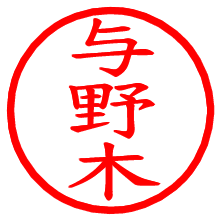 [朱肉の色]を選び、入力窓に“与野木”と入力して[生成]ボタンを押すと、印影が更新され、リンクから電子印鑑(デジタル印影)がダウンロードできます。 電子印鑑「与野木」の作り方文字表示が変なときや、文字バランスが悪いときは[字形切替]のチェックボックスでON/OFFを切り替え[生成]しなおしてください。 生成される画像は通常の印影「与野木.png」と、にじみを表現した少し太めの印影「与野木B.png」の背面透過PNG形式2種と、鮮明なPDF形式の印影「与野木.pdf」の計3種類です。 朱肉の微妙な色の違いを7色で表現しました。デフォルト(左端)は、JISが定めた朱肉の色のマンセル値(7.5R 5/14)をRGB値(217,66,54)に変換したものになっています。 「電子透かし」にチェックを入れて[生成]ボタンを押すと、タイムスタンプを電子透かしとして埋め込んだセキュアな電子印鑑が作れます。詳細は別ページの「タイムスタンプと電子透かし」でご覧ください。 与野木さんの日付印が作れます。「日付スタンプメーカー」は、社内向けの書類に利用されることの多い日付印(データ印)が無料で作れるWebアプリケーションです。中段に日付が入り、上段と下段は、ともに8文字まで文字が入ります。 ![]() 古代文字で落款印が作れます。「落款スタンプメーカー」で作品を引き立たせる落款印が作れます。