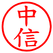[朱肉の色]を選び、入力窓に“中信”と入力して[生成]ボタンを押すと、印影が更新され、リンクから電子印鑑(デジタル印影)がダウンロードできます。 電子印鑑「中信」の作り方文字表示が変なときや、文字バランスが悪いときは[字形切替]のチェックボックスでON/OFFを切り替え[生成]しなおしてください。 生成される画像は通常の印影「中信.png」と、にじみを表現した少し太めの印影「中信B.png」の背面透過PNG形式2種と、鮮明なPDF形式の印影「中信.pdf」の計3種類です。 朱肉の微妙な色の違いを7色で表現しました。デフォルト(左端)は、JISが定めた朱肉の色のマンセル値(7.5R 5/14)をRGB値(217,66,54)に変換したものになっています。 「電子透かし」にチェックを入れて[生成]ボタンを押すと、タイムスタンプを電子透かしとして埋め込んだセキュアな電子印鑑が作れます。詳細は別ページの「タイムスタンプと電子透かし」でご覧ください。 中信さんの日付印が作れます。「日付スタンプメーカー」は、社内向けの書類に利用されることの多い日付印(データ印)が無料で作れるWebアプリケーションです。中段に日付が入り、上段と下段は、ともに8文字まで文字が入ります。 ![]() 古代文字で落款印が作れます。「落款スタンプメーカー」で作品を引き立たせる落款印が作れます。