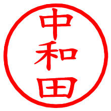 [朱肉の色]を選び、入力窓に“中和田”と入力して[生成]ボタンを押すと、印影が更新され、リンクから電子印鑑(デジタル印影)がダウンロードできます。 電子印鑑「中和田」の作り方文字表示が変なときや、文字バランスが悪いときは[字形切替]のチェックボックスでON/OFFを切り替え[生成]しなおしてください。 生成される画像は通常の印影「中和田.png」と、にじみを表現した少し太めの印影「中和田B.png」の背面透過PNG形式2種と、鮮明なPDF形式の印影「中和田.pdf」の計3種類です。 朱肉の微妙な色の違いを7色で表現しました。デフォルト(左端)は、JISが定めた朱肉の色のマンセル値(7.5R 5/14)をRGB値(217,66,54)に変換したものになっています。 「電子透かし」にチェックを入れて[生成]ボタンを押すと、タイムスタンプを透かしとして埋め込んだセキュアな電子印鑑が作れます。詳細は別ページの「電子透かしとタイムスタンプ」でご覧ください。 中和田さんの日付印が作れます。「日付スタンプメーカー」は、社内向けの書類に利用されることの多い日付印(データ印)が無料で作れるWebアプリケーションです。中段に日付が入り、上段と下段は、ともに8文字まで文字が入ります。 ![]() 古代文字で落款印が作れます。「落款スタンプメーカー」で作品を引き立たせる落款印が作れます。