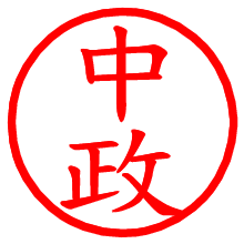 [朱肉の色]を選び、入力窓に“中政”と入力して[生成]ボタンを押すと、印影が更新され、リンクから電子印鑑(デジタル印影)がダウンロードできます。 電子印鑑「中政」の作り方文字表示が変なときや、文字バランスが悪いときは[字形切替]のチェックボックスでON/OFFを切り替え[生成]しなおしてください。 生成される画像は通常の印影「中政.png」と、にじみを表現した少し太めの印影「中政B.png」の背面透過PNG形式2種と、鮮明なPDF形式の印影「中政.pdf」の計3種類です。 朱肉の微妙な色の違いを7色で表現しました。デフォルト(左端)は、JISが定めた朱肉の色のマンセル値(7.5R 5/14)をRGB値(217,66,54)に変換したものになっています。 「電子透かし」にチェックを入れて[生成]ボタンを押すと、タイムスタンプを電子透かしとして埋め込んだセキュアな電子印鑑が作れます。詳細は別ページの「タイムスタンプと電子透かし」でご覧ください。 中政さんの日付印が作れます。「日付スタンプメーカー」は、社内向けの書類に利用されることの多い日付印(データ印)が無料で作れるWebアプリケーションです。中段に日付が入り、上段と下段は、ともに8文字まで文字が入ります。 ![]() 古代文字で落款印が作れます。「落款スタンプメーカー」で作品を引き立たせる落款印が作れます。