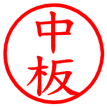 [朱肉の色]を選び、入力窓に“中板”と入力して[生成]ボタンを押すと、印影が更新され、リンクから電子印鑑(デジタル印影)がダウンロードできます。 電子印鑑「中板」の作り方文字表示が変なときや、文字バランスが悪いときは[字形切替]のチェックボックスでON/OFFを切り替え[生成]しなおしてください。 生成される画像は通常の印影「中板.png」と、にじみを表現した少し太めの印影「中板B.png」の背面透過PNG形式2種と、鮮明なPDF形式の印影「中板.pdf」の計3種類です。 朱肉の微妙な色の違いを7色で表現しました。デフォルト(左端)は、JISが定めた朱肉の色のマンセル値(7.5R 5/14)をRGB値(217,66,54)に変換したものになっています。 「電子透かし」にチェックを入れて[生成]ボタンを押すと、タイムスタンプを電子透かしとして埋め込んだセキュアな電子印鑑が作れます。詳細は別ページの「タイムスタンプと電子透かし」でご覧ください。 中板さんの日付印が作れます。「日付スタンプメーカー」は、社内向けの書類に利用されることの多い日付印(データ印)が無料で作れるWebアプリケーションです。中段に日付が入り、上段と下段は、ともに8文字まで文字が入ります。 ![]() 古代文字で落款印が作れます。「落款スタンプメーカー」で作品を引き立たせる落款印が作れます。