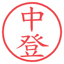 [朱肉の色]を選び、入力窓に“中登”と入力して[生成]ボタンを押すと、印影が更新され、リンクから電子印鑑(デジタル印影)がダウンロードできます。 電子印鑑「中登」の作り方文字表示が変なときや、文字バランスが悪いときは[字形切替]のチェックボックスでON/OFFを切り替え[生成]しなおしてください。 生成される画像は通常の印影「中登.png」と、にじみを表現した少し太めの印影「中登B.png」の背面透過PNG形式2種と、鮮明なPDF形式の印影「中登.pdf」の計3種類です。 朱肉の微妙な色の違いを7色で表現しました。デフォルト(左端)は、JISが定めた朱肉の色のマンセル値(7.5R 5/14)をRGB値(217,66,54)に変換したものになっています。 「電子透かし」にチェックを入れて[生成]ボタンを押すと、タイムスタンプを電子透かしとして埋め込んだセキュアな電子印鑑が作れます。詳細は別ページの「タイムスタンプと電子透かし」でご覧ください。 中登さんの日付印が作れます。「日付スタンプメーカー」は、社内向けの書類に利用されることの多い日付印(データ印)が無料で作れるWebアプリケーションです。中段に日付が入り、上段と下段は、ともに8文字まで文字が入ります。 ![]() 古代文字で落款印が作れます。「落款スタンプメーカー」で作品を引き立たせる落款印が作れます。