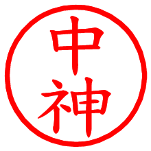 [朱肉の色]を選び、入力窓に“中神”と入力して[生成]ボタンを押すと、印影が更新され、リンクから電子印鑑(デジタル印影)がダウンロードできます。 電子印鑑「中神」の作り方文字表示が変なときや、文字バランスが悪いときは[字形切替]のチェックボックスでON/OFFを切り替え[生成]しなおしてください。 生成される画像は通常の印影「中神.png」と、にじみを表現した少し太めの印影「中神B.png」の背面透過PNG形式2種と、鮮明なPDF形式の印影「中神.pdf」の計3種類です。 朱肉の微妙な色の違いを7色で表現しました。デフォルト(左端)は、JISが定めた朱肉の色のマンセル値(7.5R 5/14)をRGB値(217,66,54)に変換したものになっています。 「電子透かし」にチェックを入れて[生成]ボタンを押すと、タイムスタンプを透かしとして埋め込んだセキュアな電子印鑑が作れます。詳細は別ページの「電子透かしとタイムスタンプ」でご覧ください。 中神さんの日付印が作れます。「日付スタンプメーカー」は、社内向けの書類に利用されることの多い日付印(データ印)が無料で作れるWebアプリケーションです。中段に日付が入り、上段と下段は、ともに8文字まで文字が入ります。 ![]() 古代文字で落款印が作れます。「落款スタンプメーカー」で作品を引き立たせる落款印が作れます。