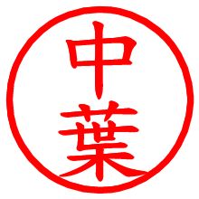 [朱肉の色]を選び、入力窓に“中葉”と入力して[生成]ボタンを押すと、印影が更新され、リンクから電子印鑑(デジタル印影)がダウンロードできます。 電子印鑑「中葉」の作り方文字表示が変なときや、文字バランスが悪いときは[字形切替]のチェックボックスでON/OFFを切り替え[生成]しなおしてください。 生成される画像は通常の印影「中葉.png」と、にじみを表現した少し太めの印影「中葉B.png」の背面透過PNG形式2種と、鮮明なPDF形式の印影「中葉.pdf」の計3種類です。 朱肉の微妙な色の違いを7色で表現しました。デフォルト(左端)は、JISが定めた朱肉の色のマンセル値(7.5R 5/14)をRGB値(217,66,54)に変換したものになっています。 「電子透かし」にチェックを入れて[生成]ボタンを押すと、タイムスタンプを透かしとして埋め込んだセキュアな電子印鑑が作れます。詳細は別ページの「電子透かしとタイムスタンプ」でご覧ください。  中葉さんの日付印が作れます。「日付スタンプメーカー」は、社内向けの書類に利用されることの多い日付印(データ印)が無料で作れるWebアプリケーションです。中段に日付が入り、上段と下段は、ともに8文字まで文字が入ります。 ![]()  古代文字で落款印が作れます。「落款スタンプメーカー」で作品を引き立たせる落款印が作れます。