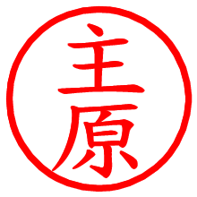 [朱肉の色]を選び、入力窓に“主原”と入力して[生成]ボタンを押すと、印影が更新され、リンクから電子印鑑(デジタル印影)がダウンロードできます。 電子印鑑「主原」の作り方文字表示が変なときや、文字バランスが悪いときは[字形切替]のチェックボックスでON/OFFを切り替え[生成]しなおしてください。 生成される画像は通常の印影「主原.png」と、にじみを表現した少し太めの印影「主原B.png」の背面透過PNG形式2種と、鮮明なPDF形式の印影「主原.pdf」の計3種類です。 朱肉の微妙な色の違いを7色で表現しました。デフォルト(左端)は、JISが定めた朱肉の色のマンセル値(7.5R 5/14)をRGB値(217,66,54)に変換したものになっています。 「電子透かし」にチェックを入れて[生成]ボタンを押すと、タイムスタンプを透かしとして埋め込んだセキュアな電子印鑑が作れます。詳細は別ページの「電子透かしとタイムスタンプ」でご覧ください。 主原さんの日付印が作れます。「日付スタンプメーカー」は、社内向けの書類に利用されることの多い日付印(データ印)が無料で作れるWebアプリケーションです。中段に日付が入り、上段と下段は、ともに8文字まで文字が入ります。 ![]() 古代文字で落款印が作れます。「落款スタンプメーカー」で作品を引き立たせる落款印が作れます。