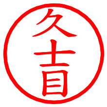 [朱肉の色]を選び、入力窓に“久士目”と入力して[生成]ボタンを押すと、印影が更新され、リンクから電子印鑑(デジタル印影)がダウンロードできます。 電子印鑑「久士目」の作り方文字表示が変なときや、文字バランスが悪いときは[字形切替]のチェックボックスでON/OFFを切り替え[生成]しなおしてください。 生成される画像は通常の印影「久士目.png」と、にじみを表現した少し太めの印影「久士目B.png」の背面透過PNG形式2種と、鮮明なPDF形式の印影「久士目.pdf」の計3種類です。 朱肉の微妙な色の違いを7色で表現しました。デフォルト(左端)は、JISが定めた朱肉の色のマンセル値(7.5R 5/14)をRGB値(217,66,54)に変換したものになっています。 「電子透かし」にチェックを入れて[生成]ボタンを押すと、タイムスタンプを電子透かしとして埋め込んだセキュアな電子印鑑が作れます。詳細は別ページの「タイムスタンプと電子透かし」でご覧ください。 久士目さんの日付印が作れます。「日付スタンプメーカー」は、社内向けの書類に利用されることの多い日付印(データ印)が無料で作れるWebアプリケーションです。中段に日付が入り、上段と下段は、ともに8文字まで文字が入ります。 ![]() 古代文字で落款印が作れます。「落款スタンプメーカー」で作品を引き立たせる落款印が作れます。