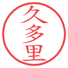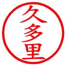 [朱肉の色]を選び、入力窓に“久多里”と入力して[生成]ボタンを押すと、印影が更新され、リンクから電子印鑑(デジタル印影)がダウンロードできます。 電子印鑑「久多里」の作り方文字表示が変なときや、文字バランスが悪いときは[字形切替]のチェックボックスでON/OFFを切り替え[生成]しなおしてください。 生成される画像は通常の印影「久多里.png」と、にじみを表現した少し太めの印影「久多里B.png」の背面透過PNG形式2種と、鮮明なPDF形式の印影「久多里.pdf」の計3種類です。 朱肉の微妙な色の違いを7色で表現しました。デフォルト(左端)は、JISが定めた朱肉の色のマンセル値(7.5R 5/14)をRGB値(217,66,54)に変換したものになっています。 「電子透かし」にチェックを入れて[生成]ボタンを押すと、タイムスタンプを電子透かしとして埋め込んだセキュアな電子印鑑が作れます。詳細は別ページの「タイムスタンプと電子透かし」でご覧ください。 久多里さんの日付印が作れます。「日付スタンプメーカー」は、社内向けの書類に利用されることの多い日付印(データ印)が無料で作れるWebアプリケーションです。中段に日付が入り、上段と下段は、ともに8文字まで文字が入ります。 ![]() 古代文字で落款印が作れます。「落款スタンプメーカー」で作品を引き立たせる落款印が作れます。