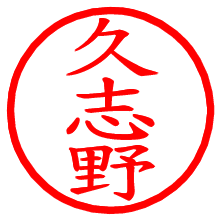 [朱肉の色]を選び、入力窓に“久志野”と入力して[生成]ボタンを押すと、印影が更新され、リンクから電子印鑑(デジタル印影)がダウンロードできます。 電子印鑑「久志野」の作り方文字表示が変なときや、文字バランスが悪いときは[字形切替]のチェックボックスでON/OFFを切り替え[生成]しなおしてください。 生成される画像は通常の印影「久志野.png」と、にじみを表現した少し太めの印影「久志野B.png」の背面透過PNG形式2種と、鮮明なPDF形式の印影「久志野.pdf」の計3種類です。 朱肉の微妙な色の違いを7色で表現しました。デフォルト(左端)は、JISが定めた朱肉の色のマンセル値(7.5R 5/14)をRGB値(217,66,54)に変換したものになっています。 「電子透かし」にチェックを入れて[生成]ボタンを押すと、タイムスタンプを電子透かしとして埋め込んだセキュアな電子印鑑が作れます。詳細は別ページの「タイムスタンプと電子透かし」でご覧ください。 久志野さんの日付印が作れます。「日付スタンプメーカー」は、社内向けの書類に利用されることの多い日付印(データ印)が無料で作れるWebアプリケーションです。中段に日付が入り、上段と下段は、ともに8文字まで文字が入ります。 ![]() 古代文字で落款印が作れます。「落款スタンプメーカー」で作品を引き立たせる落款印が作れます。
