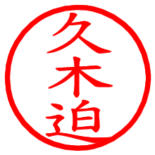 [朱肉の色]を選び、入力窓に“久木迫”と入力して[生成]ボタンを押すと、印影が更新され、リンクから電子印鑑(デジタル印影)がダウンロードできます。 電子印鑑「久木迫」の作り方文字表示が変なときや、文字バランスが悪いときは[字形切替]のチェックボックスでON/OFFを切り替え[生成]しなおしてください。 生成される画像は通常の印影「久木迫.png」と、にじみを表現した少し太めの印影「久木迫B.png」の背面透過PNG形式2種と、鮮明なPDF形式の印影「久木迫.pdf」の計3種類です。 朱肉の微妙な色の違いを7色で表現しました。デフォルト(左端)は、JISが定めた朱肉の色のマンセル値(7.5R 5/14)をRGB値(217,66,54)に変換したものになっています。 「電子透かし」にチェックを入れて[生成]ボタンを押すと、タイムスタンプを電子透かしとして埋め込んだセキュアな電子印鑑が作れます。詳細は別ページの「タイムスタンプと電子透かし」でご覧ください。 久木迫さんの日付印が作れます。「日付スタンプメーカー」は、社内向けの書類に利用されることの多い日付印(データ印)が無料で作れるWebアプリケーションです。中段に日付が入り、上段と下段は、ともに8文字まで文字が入ります。 ![]() 古代文字で落款印が作れます。「落款スタンプメーカー」で作品を引き立たせる落款印が作れます。