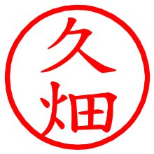 [朱肉の色]を選び、入力窓に“久畑”と入力して[生成]ボタンを押すと、印影が更新され、リンクから電子印鑑(デジタル印影)がダウンロードできます。 電子印鑑「久畑」の作り方文字表示が変なときや、文字バランスが悪いときは[字形切替]のチェックボックスでON/OFFを切り替え[生成]しなおしてください。 生成される画像は通常の印影「久畑.png」と、にじみを表現した少し太めの印影「久畑B.png」の背面透過PNG形式2種と、鮮明なPDF形式の印影「久畑.pdf」の計3種類です。 朱肉の微妙な色の違いを7色で表現しました。デフォルト(左端)は、JISが定めた朱肉の色のマンセル値(7.5R 5/14)をRGB値(217,66,54)に変換したものになっています。 「電子透かし」にチェックを入れて[生成]ボタンを押すと、タイムスタンプを電子透かしとして埋め込んだセキュアな電子印鑑が作れます。詳細は別ページの「タイムスタンプと電子透かし」でご覧ください。 久畑さんの日付印が作れます。「日付スタンプメーカー」は、社内向けの書類に利用されることの多い日付印(データ印)が無料で作れるWebアプリケーションです。中段に日付が入り、上段と下段は、ともに8文字まで文字が入ります。 ![]() 古代文字で落款印が作れます。「落款スタンプメーカー」で作品を引き立たせる落款印が作れます。