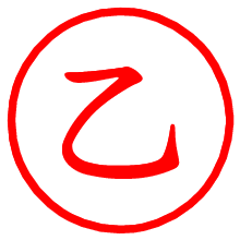 [朱肉の色]を選び、入力窓に“乙”と入力して[生成]ボタンを押すと、印影が更新され、リンクから電子印鑑(デジタル印影)がダウンロードできます。 電子印鑑「乙」の作り方文字表示が変なときや、文字バランスが悪いときは[字形切替]のチェックボックスでON/OFFを切り替え[生成]しなおしてください。 生成される画像は通常の印影「乙.png」と、にじみを表現した少し太めの印影「乙B.png」の背面透過PNG形式2種と、鮮明なPDF形式の印影「乙.pdf」の計3種類です。 朱肉の微妙な色の違いを7色で表現しました。デフォルト(左端)は、JISが定めた朱肉の色のマンセル値(7.5R 5/14)をRGB値(217,66,54)に変換したものになっています。 「電子透かし」にチェックを入れて[生成]ボタンを押すと、タイムスタンプを電子透かしとして埋め込んだセキュアな電子印鑑が作れます。詳細は別ページの「タイムスタンプと電子透かし」でご覧ください。 乙さんの日付印が作れます。「日付スタンプメーカー」は、社内向けの書類に利用されることの多い日付印(データ印)が無料で作れるWebアプリケーションです。中段に日付が入り、上段と下段は、ともに8文字まで文字が入ります。 ![]() 古代文字で落款印が作れます。「落款スタンプメーカー」で作品を引き立たせる落款印が作れます。