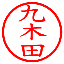 [朱肉の色]を選び、入力窓に“九木田”と入力して[生成]ボタンを押すと、印影が更新され、リンクから電子印鑑(デジタル印影)がダウンロードできます。 電子印鑑「九木田」の作り方文字表示が変なときや、文字バランスが悪いときは[字形切替]のチェックボックスでON/OFFを切り替え[生成]しなおしてください。 生成される画像は通常の印影「九木田.png」と、にじみを表現した少し太めの印影「九木田B.png」の背面透過PNG形式2種と、鮮明なPDF形式の印影「九木田.pdf」の計3種類です。 朱肉の微妙な色の違いを7色で表現しました。デフォルト(左端)は、JISが定めた朱肉の色のマンセル値(7.5R 5/14)をRGB値(217,66,54)に変換したものになっています。 「電子透かし」にチェックを入れて[生成]ボタンを押すと、タイムスタンプを電子透かしとして埋め込んだセキュアな電子印鑑が作れます。詳細は別ページの「タイムスタンプと電子透かし」でご覧ください。 九木田さんの日付印が作れます。「日付スタンプメーカー」は、社内向けの書類に利用されることの多い日付印(データ印)が無料で作れるWebアプリケーションです。中段に日付が入り、上段と下段は、ともに8文字まで文字が入ります。 ![]() 古代文字で落款印が作れます。「落款スタンプメーカー」で作品を引き立たせる落款印が作れます。
