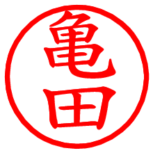 [朱肉の色]を選び、入力窓に“亀田”と入力して[生成]ボタンを押すと、印影が更新され、リンクから電子印鑑(デジタル印影)がダウンロードできます。 電子印鑑「亀田」の作り方文字表示が変なときや、文字バランスが悪いときは[字形切替]のチェックボックスでON/OFFを切り替え[生成]しなおしてください。 生成される画像は通常の印影「亀田.png」と、にじみを表現した少し太めの印影「亀田B.png」の背面透過PNG形式2種と、鮮明なPDF形式の印影「亀田.pdf」の計3種類です。 朱肉の微妙な色の違いを7色で表現しました。デフォルト(左端)は、JISが定めた朱肉の色のマンセル値(7.5R 5/14)をRGB値(217,66,54)に変換したものになっています。 「電子透かし」にチェックを入れて[生成]ボタンを押すと、タイムスタンプを透かしとして埋め込んだセキュアな電子印鑑が作れます。詳細は別ページの「電子透かしとタイムスタンプ」でご覧ください。 亀田さんの日付印が作れます。「日付スタンプメーカー」は、社内向けの書類に利用されることの多い日付印(データ印)が無料で作れるWebアプリケーションです。中段に日付が入り、上段と下段は、ともに8文字まで文字が入ります。 ![]() 古代文字で落款印が作れます。「落款スタンプメーカー」で作品を引き立たせる落款印が作れます。