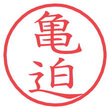 [朱肉の色]を選び、入力窓に“亀迫”と入力して[生成]ボタンを押すと、印影が更新され、リンクから電子印鑑(デジタル印影)がダウンロードできます。 電子印鑑「亀迫」の作り方文字表示が変なときや、文字バランスが悪いときは[字形切替]のチェックボックスでON/OFFを切り替え[生成]しなおしてください。 生成される画像は通常の印影「亀迫.png」と、にじみを表現した少し太めの印影「亀迫B.png」の背面透過PNG形式2種と、鮮明なPDF形式の印影「亀迫.pdf」の計3種類です。 朱肉の微妙な色の違いを7色で表現しました。デフォルト(左端)は、JISが定めた朱肉の色のマンセル値(7.5R 5/14)をRGB値(217,66,54)に変換したものになっています。 「電子透かし」にチェックを入れて[生成]ボタンを押すと、タイムスタンプを電子透かしとして埋め込んだセキュアな電子印鑑が作れます。詳細は別ページの「タイムスタンプと電子透かし」でご覧ください。 亀迫さんの日付印が作れます。「日付スタンプメーカー」は、社内向けの書類に利用されることの多い日付印(データ印)が無料で作れるWebアプリケーションです。中段に日付が入り、上段と下段は、ともに8文字まで文字が入ります。 ![]() 古代文字で落款印が作れます。「落款スタンプメーカー」で作品を引き立たせる落款印が作れます。