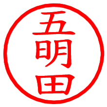[朱肉の色]を選び、入力窓に“五明田”と入力して[生成]ボタンを押すと、印影が更新され、リンクから電子印鑑(デジタル印影)がダウンロードできます。 電子印鑑「五明田」の作り方文字表示が変なときや、文字バランスが悪いときは[字形切替]のチェックボックスでON/OFFを切り替え[生成]しなおしてください。 生成される画像は通常の印影「五明田.png」と、にじみを表現した少し太めの印影「五明田B.png」の背面透過PNG形式2種と、鮮明なPDF形式の印影「五明田.pdf」の計3種類です。 朱肉の微妙な色の違いを7色で表現しました。デフォルト(左端)は、JISが定めた朱肉の色のマンセル値(7.5R 5/14)をRGB値(217,66,54)に変換したものになっています。 「電子透かし」にチェックを入れて[生成]ボタンを押すと、タイムスタンプを電子透かしとして埋め込んだセキュアな電子印鑑が作れます。詳細は別ページの「タイムスタンプと電子透かし」でご覧ください。 五明田さんの日付印が作れます。「日付スタンプメーカー」は、社内向けの書類に利用されることの多い日付印(データ印)が無料で作れるWebアプリケーションです。中段に日付が入り、上段と下段は、ともに8文字まで文字が入ります。 ![]() 古代文字で落款印が作れます。「落款スタンプメーカー」で作品を引き立たせる落款印が作れます。