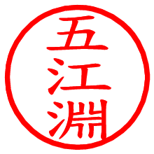 [朱肉の色]を選び、入力窓に“五江淵”と入力して[生成]ボタンを押すと、印影が更新され、リンクから電子印鑑(デジタル印影)がダウンロードできます。 電子印鑑「五江淵」の作り方文字表示が変なときや、文字バランスが悪いときは[字形切替]のチェックボックスでON/OFFを切り替え[生成]しなおしてください。 生成される画像は通常の印影「五江淵.png」と、にじみを表現した少し太めの印影「五江淵B.png」の背面透過PNG形式2種と、鮮明なPDF形式の印影「五江淵.pdf」の計3種類です。 朱肉の微妙な色の違いを7色で表現しました。デフォルト(左端)は、JISが定めた朱肉の色のマンセル値(7.5R 5/14)をRGB値(217,66,54)に変換したものになっています。 「電子透かし」にチェックを入れて[生成]ボタンを押すと、タイムスタンプを電子透かしとして埋め込んだセキュアな電子印鑑が作れます。詳細は別ページの「タイムスタンプと電子透かし」でご覧ください。 五江淵さんの日付印が作れます。「日付スタンプメーカー」は、社内向けの書類に利用されることの多い日付印(データ印)が無料で作れるWebアプリケーションです。中段に日付が入り、上段と下段は、ともに8文字まで文字が入ります。 ![]() 古代文字で落款印が作れます。「落款スタンプメーカー」で作品を引き立たせる落款印が作れます。