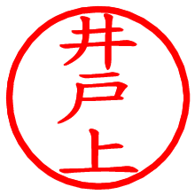 [朱肉の色]を選び、入力窓に“井戸上”と入力して[生成]ボタンを押すと、印影が更新され、リンクから電子印鑑(デジタル印影)がダウンロードできます。 電子印鑑「井戸上」の作り方文字表示が変なときや、文字バランスが悪いときは[字形切替]のチェックボックスでON/OFFを切り替え[生成]しなおしてください。 生成される画像は通常の印影「井戸上.png」と、にじみを表現した少し太めの印影「井戸上B.png」の背面透過PNG形式2種と、鮮明なPDF形式の印影「井戸上.pdf」の計3種類です。 朱肉の微妙な色の違いを7色で表現しました。デフォルト(左端)は、JISが定めた朱肉の色のマンセル値(7.5R 5/14)をRGB値(217,66,54)に変換したものになっています。 「電子透かし」にチェックを入れて[生成]ボタンを押すと、タイムスタンプを電子透かしとして埋め込んだセキュアな電子印鑑が作れます。詳細は別ページの「タイムスタンプと電子透かし」でご覧ください。 井戸上さんの日付印が作れます。「日付スタンプメーカー」は、社内向けの書類に利用されることの多い日付印(データ印)が無料で作れるWebアプリケーションです。中段に日付が入り、上段と下段は、ともに8文字まで文字が入ります。 ![]() 古代文字で落款印が作れます。「落款スタンプメーカー」で作品を引き立たせる落款印が作れます。