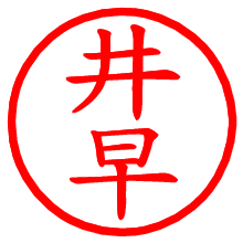 [朱肉の色]を選び、入力窓に“井早”と入力して[生成]ボタンを押すと、印影が更新され、リンクから電子印鑑(デジタル印影)がダウンロードできます。 電子印鑑「井早」の作り方文字表示が変なときや、文字バランスが悪いときは[字形切替]のチェックボックスでON/OFFを切り替え[生成]しなおしてください。 生成される画像は通常の印影「井早.png」と、にじみを表現した少し太めの印影「井早B.png」の背面透過PNG形式2種と、鮮明なPDF形式の印影「井早.pdf」の計3種類です。 朱肉の微妙な色の違いを7色で表現しました。デフォルト(左端)は、JISが定めた朱肉の色のマンセル値(7.5R 5/14)をRGB値(217,66,54)に変換したものになっています。 「電子透かし」にチェックを入れて[生成]ボタンを押すと、タイムスタンプを電子透かしとして埋め込んだセキュアな電子印鑑が作れます。詳細は別ページの「タイムスタンプと電子透かし」でご覧ください。 井早さんの日付印が作れます。「日付スタンプメーカー」は、社内向けの書類に利用されることの多い日付印(データ印)が無料で作れるWebアプリケーションです。中段に日付が入り、上段と下段は、ともに8文字まで文字が入ります。 ![]() 古代文字で落款印が作れます。「落款スタンプメーカー」で作品を引き立たせる落款印が作れます。