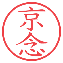 [朱肉の色]を選び、入力窓に“京念”と入力して[生成]ボタンを押すと、印影が更新され、リンクから電子印鑑(デジタル印影)がダウンロードできます。 電子印鑑「京念」の作り方文字表示が変なときや、文字バランスが悪いときは[字形切替]のチェックボックスでON/OFFを切り替え[生成]しなおしてください。 生成される画像は通常の印影「京念.png」と、にじみを表現した少し太めの印影「京念B.png」の背面透過PNG形式2種と、鮮明なPDF形式の印影「京念.pdf」の計3種類です。 朱肉の微妙な色の違いを7色で表現しました。デフォルト(左端)は、JISが定めた朱肉の色のマンセル値(7.5R 5/14)をRGB値(217,66,54)に変換したものになっています。 「電子透かし」にチェックを入れて[生成]ボタンを押すと、タイムスタンプを電子透かしとして埋め込んだセキュアな電子印鑑が作れます。詳細は別ページの「タイムスタンプと電子透かし」でご覧ください。 京念さんの日付印が作れます。「日付スタンプメーカー」は、社内向けの書類に利用されることの多い日付印(データ印)が無料で作れるWebアプリケーションです。中段に日付が入り、上段と下段は、ともに8文字まで文字が入ります。 ![]() 古代文字で落款印が作れます。「落款スタンプメーカー」で作品を引き立たせる落款印が作れます。