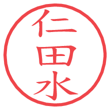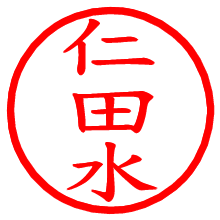 [朱肉の色]を選び、入力窓に“仁田水”と入力して[生成]ボタンを押すと、印影が更新され、リンクから電子印鑑(デジタル印影)がダウンロードできます。 電子印鑑「仁田水」の作り方文字表示が変なときや、文字バランスが悪いときは[字形切替]のチェックボックスでON/OFFを切り替え[生成]しなおしてください。 生成される画像は通常の印影「仁田水.png」と、にじみを表現した少し太めの印影「仁田水B.png」の背面透過PNG形式2種と、鮮明なPDF形式の印影「仁田水.pdf」の計3種類です。 朱肉の微妙な色の違いを7色で表現しました。デフォルト(左端)は、JISが定めた朱肉の色のマンセル値(7.5R 5/14)をRGB値(217,66,54)に変換したものになっています。 「電子透かし」にチェックを入れて[生成]ボタンを押すと、タイムスタンプを電子透かしとして埋め込んだセキュアな電子印鑑が作れます。詳細は別ページの「タイムスタンプと電子透かし」でご覧ください。 仁田水さんの日付印が作れます。「日付スタンプメーカー」は、社内向けの書類に利用されることの多い日付印(データ印)が無料で作れるWebアプリケーションです。中段に日付が入り、上段と下段は、ともに8文字まで文字が入ります。 ![]() 古代文字で落款印が作れます。「落款スタンプメーカー」で作品を引き立たせる落款印が作れます。