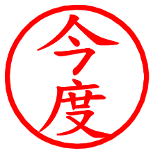 [朱肉の色]を選び、入力窓に“今度”と入力して[生成]ボタンを押すと、印影が更新され、リンクから電子印鑑(デジタル印影)がダウンロードできます。 電子印鑑「今度」の作り方文字表示が変なときや、文字バランスが悪いときは[字形切替]のチェックボックスでON/OFFを切り替え[生成]しなおしてください。 生成される画像は通常の印影「今度.png」と、にじみを表現した少し太めの印影「今度B.png」の背面透過PNG形式2種と、鮮明なPDF形式の印影「今度.pdf」の計3種類です。 朱肉の微妙な色の違いを7色で表現しました。デフォルト(左端)は、JISが定めた朱肉の色のマンセル値(7.5R 5/14)をRGB値(217,66,54)に変換したものになっています。 「電子透かし」にチェックを入れて[生成]ボタンを押すと、タイムスタンプを透かしとして埋め込んだセキュアな電子印鑑が作れます。詳細は別ページの「電子透かしとタイムスタンプ」でご覧ください。 今度さんの日付印が作れます。「日付スタンプメーカー」は、社内向けの書類に利用されることの多い日付印(データ印)が無料で作れるWebアプリケーションです。中段に日付が入り、上段と下段は、ともに8文字まで文字が入ります。 ![]() 古代文字で落款印が作れます。「落款スタンプメーカー」で作品を引き立たせる落款印が作れます。