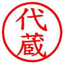 [朱肉の色]を選び、入力窓に“代蔵”と入力して[生成]ボタンを押すと、印影が更新され、リンクから電子印鑑(デジタル印影)がダウンロードできます。 電子印鑑「代蔵」の作り方文字表示が変なときや、文字バランスが悪いときは[字形切替]のチェックボックスでON/OFFを切り替え[生成]しなおしてください。 生成される画像は通常の印影「代蔵.png」と、にじみを表現した少し太めの印影「代蔵B.png」の背面透過PNG形式2種と、鮮明なPDF形式の印影「代蔵.pdf」の計3種類です。 朱肉の微妙な色の違いを7色で表現しました。デフォルト(左端)は、JISが定めた朱肉の色のマンセル値(7.5R 5/14)をRGB値(217,66,54)に変換したものになっています。 「電子透かし」にチェックを入れて[生成]ボタンを押すと、タイムスタンプを電子透かしとして埋め込んだセキュアな電子印鑑が作れます。詳細は別ページの「タイムスタンプと電子透かし」でご覧ください。 代蔵さんの日付印が作れます。「日付スタンプメーカー」は、社内向けの書類に利用されることの多い日付印(データ印)が無料で作れるWebアプリケーションです。中段に日付が入り、上段と下段は、ともに8文字まで文字が入ります。 ![]() 古代文字で落款印が作れます。「落款スタンプメーカー」で作品を引き立たせる落款印が作れます。