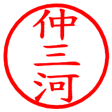 [朱肉の色]を選び、入力窓に“仲三河”と入力して[生成]ボタンを押すと、印影が更新され、リンクから電子印鑑(デジタル印影)がダウンロードできます。 電子印鑑「仲三河」の作り方文字表示が変なときや、文字バランスが悪いときは[字形切替]のチェックボックスでON/OFFを切り替え[生成]しなおしてください。 生成される画像は通常の印影「仲三河.png」と、にじみを表現した少し太めの印影「仲三河B.png」の背面透過PNG形式2種と、鮮明なPDF形式の印影「仲三河.pdf」の計3種類です。 朱肉の微妙な色の違いを7色で表現しました。デフォルト(左端)は、JISが定めた朱肉の色のマンセル値(7.5R 5/14)をRGB値(217,66,54)に変換したものになっています。 「電子透かし」にチェックを入れて[生成]ボタンを押すと、タイムスタンプを電子透かしとして埋め込んだセキュアな電子印鑑が作れます。詳細は別ページの「タイムスタンプと電子透かし」でご覧ください。 仲三河さんの日付印が作れます。「日付スタンプメーカー」は、社内向けの書類に利用されることの多い日付印(データ印)が無料で作れるWebアプリケーションです。中段に日付が入り、上段と下段は、ともに8文字まで文字が入ります。 ![]() 古代文字で落款印が作れます。「落款スタンプメーカー」で作品を引き立たせる落款印が作れます。