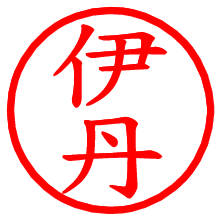 [朱肉の色]を選び、入力窓に“伊丹”と入力して[生成]ボタンを押すと、印影が更新され、リンクから電子印鑑(デジタル印影)がダウンロードできます。 電子印鑑「伊丹」の作り方文字表示が変なときや、文字バランスが悪いときは[字形切替]のチェックボックスでON/OFFを切り替え[生成]しなおしてください。 生成される画像は通常の印影「伊丹.png」と、にじみを表現した少し太めの印影「伊丹B.png」の背面透過PNG形式2種と、鮮明なPDF形式の印影「伊丹.pdf」の計3種類です。 朱肉の微妙な色の違いを7色で表現しました。デフォルト(左端)は、JISが定めた朱肉の色のマンセル値(7.5R 5/14)をRGB値(217,66,54)に変換したものになっています。 「電子透かし」にチェックを入れて[生成]ボタンを押すと、タイムスタンプを透かしとして埋め込んだセキュアな電子印鑑が作れます。詳細は別ページの「電子透かしとタイムスタンプ」でご覧ください。 伊丹さんの日付印が作れます。「日付スタンプメーカー」は、社内向けの書類に利用されることの多い日付印(データ印)が無料で作れるWebアプリケーションです。中段に日付が入り、上段と下段は、ともに8文字まで文字が入ります。 ![]() 古代文字で落款印が作れます。「落款スタンプメーカー」で作品を引き立たせる落款印が作れます。
