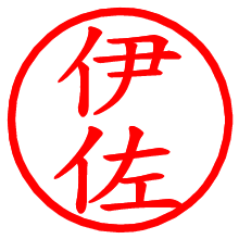 [朱肉の色]を選び、入力窓に“伊佐”と入力して[生成]ボタンを押すと、印影が更新され、リンクから電子印鑑(デジタル印影)がダウンロードできます。 電子印鑑「伊佐」の作り方文字表示が変なときや、文字バランスが悪いときは[字形切替]のチェックボックスでON/OFFを切り替え[生成]しなおしてください。 生成される画像は通常の印影「伊佐.png」と、にじみを表現した少し太めの印影「伊佐B.png」の背面透過PNG形式2種と、鮮明なPDF形式の印影「伊佐.pdf」の計3種類です。 朱肉の微妙な色の違いを7色で表現しました。デフォルト(左端)は、JISが定めた朱肉の色のマンセル値(7.5R 5/14)をRGB値(217,66,54)に変換したものになっています。 「電子透かし」にチェックを入れて[生成]ボタンを押すと、タイムスタンプを透かしとして埋め込んだセキュアな電子印鑑が作れます。詳細は別ページの「電子透かしとタイムスタンプ」でご覧ください。 伊佐さんの日付印が作れます。「日付スタンプメーカー」は、社内向けの書類に利用されることの多い日付印(データ印)が無料で作れるWebアプリケーションです。中段に日付が入り、上段と下段は、ともに8文字まで文字が入ります。 ![]() 古代文字で落款印が作れます。「落款スタンプメーカー」で作品を引き立たせる落款印が作れます。