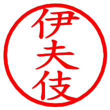 [朱肉の色]を選び、入力窓に“伊夫伎”と入力して[生成]ボタンを押すと、印影が更新され、リンクから電子印鑑(デジタル印影)がダウンロードできます。 電子印鑑「伊夫伎」の作り方文字表示が変なときや、文字バランスが悪いときは[字形切替]のチェックボックスでON/OFFを切り替え[生成]しなおしてください。 生成される画像は通常の印影「伊夫伎.png」と、にじみを表現した少し太めの印影「伊夫伎B.png」の背面透過PNG形式2種と、鮮明なPDF形式の印影「伊夫伎.pdf」の計3種類です。 朱肉の微妙な色の違いを7色で表現しました。デフォルト(左端)は、JISが定めた朱肉の色のマンセル値(7.5R 5/14)をRGB値(217,66,54)に変換したものになっています。 「電子透かし」にチェックを入れて[生成]ボタンを押すと、タイムスタンプを電子透かしとして埋め込んだセキュアな電子印鑑が作れます。詳細は別ページの「タイムスタンプと電子透かし」でご覧ください。 伊夫伎さんの日付印が作れます。「日付スタンプメーカー」は、社内向けの書類に利用されることの多い日付印(データ印)が無料で作れるWebアプリケーションです。中段に日付が入り、上段と下段は、ともに8文字まで文字が入ります。 ![]() 古代文字で落款印が作れます。「落款スタンプメーカー」で作品を引き立たせる落款印が作れます。