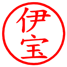 [朱肉の色]を選び、入力窓に“伊宝”と入力して[生成]ボタンを押すと、印影が更新され、リンクから電子印鑑(デジタル印影)がダウンロードできます。 電子印鑑「伊宝」の作り方文字表示が変なときや、文字バランスが悪いときは[字形切替]のチェックボックスでON/OFFを切り替え[生成]しなおしてください。 生成される画像は通常の印影「伊宝.png」と、にじみを表現した少し太めの印影「伊宝B.png」の背面透過PNG形式2種と、鮮明なPDF形式の印影「伊宝.pdf」の計3種類です。 朱肉の微妙な色の違いを7色で表現しました。デフォルト(左端)は、JISが定めた朱肉の色のマンセル値(7.5R 5/14)をRGB値(217,66,54)に変換したものになっています。 「電子透かし」にチェックを入れて[生成]ボタンを押すと、タイムスタンプを電子透かしとして埋め込んだセキュアな電子印鑑が作れます。詳細は別ページの「タイムスタンプと電子透かし」でご覧ください。 伊宝さんの日付印が作れます。「日付スタンプメーカー」は、社内向けの書類に利用されることの多い日付印(データ印)が無料で作れるWebアプリケーションです。中段に日付が入り、上段と下段は、ともに8文字まで文字が入ります。 ![]() 古代文字で落款印が作れます。「落款スタンプメーカー」で作品を引き立たせる落款印が作れます。