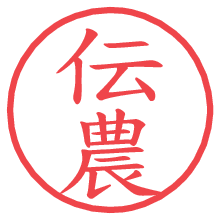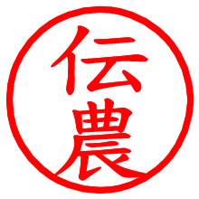 [朱肉の色]を選び、入力窓に“伝農”と入力して[生成]ボタンを押すと、印影が更新され、リンクから電子印鑑(デジタル印影)がダウンロードできます。 電子印鑑「伝農」の作り方文字表示が変なときや、文字バランスが悪いときは[字形切替]のチェックボックスでON/OFFを切り替え[生成]しなおしてください。 生成される画像は通常の印影「伝農.png」と、にじみを表現した少し太めの印影「伝農B.png」の背面透過PNG形式2種と、鮮明なPDF形式の印影「伝農.pdf」の計3種類です。 朱肉の微妙な色の違いを7色で表現しました。デフォルト(左端)は、JISが定めた朱肉の色のマンセル値(7.5R 5/14)をRGB値(217,66,54)に変換したものになっています。 「電子透かし」にチェックを入れて[生成]ボタンを押すと、タイムスタンプを電子透かしとして埋め込んだセキュアな電子印鑑が作れます。詳細は別ページの「タイムスタンプと電子透かし」でご覧ください。 伝農さんの日付印が作れます。「日付スタンプメーカー」は、社内向けの書類に利用されることの多い日付印(データ印)が無料で作れるWebアプリケーションです。中段に日付が入り、上段と下段は、ともに8文字まで文字が入ります。 ![]() 古代文字で落款印が作れます。「落款スタンプメーカー」で作品を引き立たせる落款印が作れます。