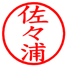 [朱肉の色]を選び、入力窓に“佐々浦”と入力して[生成]ボタンを押すと、印影が更新され、リンクから電子印鑑(デジタル印影)がダウンロードできます。 電子印鑑「佐々浦」の作り方文字表示が変なときや、文字バランスが悪いときは[字形切替]のチェックボックスでON/OFFを切り替え[生成]しなおしてください。 生成される画像は通常の印影「佐々浦.png」と、にじみを表現した少し太めの印影「佐々浦B.png」の背面透過PNG形式2種と、鮮明なPDF形式の印影「佐々浦.pdf」の計3種類です。 朱肉の微妙な色の違いを7色で表現しました。デフォルト(左端)は、JISが定めた朱肉の色のマンセル値(7.5R 5/14)をRGB値(217,66,54)に変換したものになっています。 「電子透かし」にチェックを入れて[生成]ボタンを押すと、タイムスタンプを電子透かしとして埋め込んだセキュアな電子印鑑が作れます。詳細は別ページの「タイムスタンプと電子透かし」でご覧ください。 佐々浦さんの日付印が作れます。「日付スタンプメーカー」は、社内向けの書類に利用されることの多い日付印(データ印)が無料で作れるWebアプリケーションです。中段に日付が入り、上段と下段は、ともに8文字まで文字が入ります。 ![]() 古代文字で落款印が作れます。「落款スタンプメーカー」で作品を引き立たせる落款印が作れます。