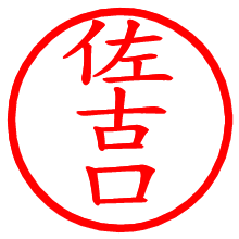 [朱肉の色]を選び、入力窓に“佐古口”と入力して[生成]ボタンを押すと、印影が更新され、リンクから電子印鑑(デジタル印影)がダウンロードできます。 電子印鑑「佐古口」の作り方文字表示が変なときや、文字バランスが悪いときは[字形切替]のチェックボックスでON/OFFを切り替え[生成]しなおしてください。 生成される画像は通常の印影「佐古口.png」と、にじみを表現した少し太めの印影「佐古口B.png」の背面透過PNG形式2種と、鮮明なPDF形式の印影「佐古口.pdf」の計3種類です。 朱肉の微妙な色の違いを7色で表現しました。デフォルト(左端)は、JISが定めた朱肉の色のマンセル値(7.5R 5/14)をRGB値(217,66,54)に変換したものになっています。 「電子透かし」にチェックを入れて[生成]ボタンを押すと、タイムスタンプを電子透かしとして埋め込んだセキュアな電子印鑑が作れます。詳細は別ページの「タイムスタンプと電子透かし」でご覧ください。 佐古口さんの日付印が作れます。「日付スタンプメーカー」は、社内向けの書類に利用されることの多い日付印(データ印)が無料で作れるWebアプリケーションです。中段に日付が入り、上段と下段は、ともに8文字まで文字が入ります。 ![]() 古代文字で落款印が作れます。「落款スタンプメーカー」で作品を引き立たせる落款印が作れます。