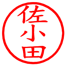 [朱肉の色]を選び、入力窓に“佐小田”と入力して[生成]ボタンを押すと、印影が更新され、リンクから電子印鑑(デジタル印影)がダウンロードできます。 電子印鑑「佐小田」の作り方文字表示が変なときや、文字バランスが悪いときは[字形切替]のチェックボックスでON/OFFを切り替え[生成]しなおしてください。 生成される画像は通常の印影「佐小田.png」と、にじみを表現した少し太めの印影「佐小田B.png」の背面透過PNG形式2種と、鮮明なPDF形式の印影「佐小田.pdf」の計3種類です。 朱肉の微妙な色の違いを7色で表現しました。デフォルト(左端)は、JISが定めた朱肉の色のマンセル値(7.5R 5/14)をRGB値(217,66,54)に変換したものになっています。 「電子透かし」にチェックを入れて[生成]ボタンを押すと、タイムスタンプを電子透かしとして埋め込んだセキュアな電子印鑑が作れます。詳細は別ページの「タイムスタンプと電子透かし」でご覧ください。 佐小田さんの日付印が作れます。「日付スタンプメーカー」は、社内向けの書類に利用されることの多い日付印(データ印)が無料で作れるWebアプリケーションです。中段に日付が入り、上段と下段は、ともに8文字まで文字が入ります。 ![]() 古代文字で落款印が作れます。「落款スタンプメーカー」で作品を引き立たせる落款印が作れます。