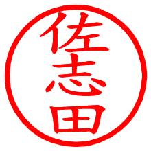 [朱肉の色]を選び、入力窓に“佐志田”と入力して[生成]ボタンを押すと、印影が更新され、リンクから電子印鑑(デジタル印影)がダウンロードできます。 電子印鑑「佐志田」の作り方文字表示が変なときや、文字バランスが悪いときは[字形切替]のチェックボックスでON/OFFを切り替え[生成]しなおしてください。 生成される画像は通常の印影「佐志田.png」と、にじみを表現した少し太めの印影「佐志田B.png」の背面透過PNG形式2種と、鮮明なPDF形式の印影「佐志田.pdf」の計3種類です。 朱肉の微妙な色の違いを7色で表現しました。デフォルト(左端)は、JISが定めた朱肉の色のマンセル値(7.5R 5/14)をRGB値(217,66,54)に変換したものになっています。 「電子透かし」にチェックを入れて[生成]ボタンを押すと、タイムスタンプを電子透かしとして埋め込んだセキュアな電子印鑑が作れます。詳細は別ページの「タイムスタンプと電子透かし」でご覧ください。 佐志田さんの日付印が作れます。「日付スタンプメーカー」は、社内向けの書類に利用されることの多い日付印(データ印)が無料で作れるWebアプリケーションです。中段に日付が入り、上段と下段は、ともに8文字まで文字が入ります。 ![]() 古代文字で落款印が作れます。「落款スタンプメーカー」で作品を引き立たせる落款印が作れます。
