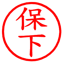 [朱肉の色]を選び、入力窓に“保下”と入力して[生成]ボタンを押すと、印影が更新され、リンクから電子印鑑(デジタル印影)がダウンロードできます。 電子印鑑「保下」の作り方文字表示が変なときや、文字バランスが悪いときは[字形切替]のチェックボックスでON/OFFを切り替え[生成]しなおしてください。 生成される画像は通常の印影「保下.png」と、にじみを表現した少し太めの印影「保下B.png」の背面透過PNG形式2種と、鮮明なPDF形式の印影「保下.pdf」の計3種類です。 朱肉の微妙な色の違いを7色で表現しました。デフォルト(左端)は、JISが定めた朱肉の色のマンセル値(7.5R 5/14)をRGB値(217,66,54)に変換したものになっています。 「電子透かし」にチェックを入れて[生成]ボタンを押すと、タイムスタンプを電子透かしとして埋め込んだセキュアな電子印鑑が作れます。詳細は別ページの「タイムスタンプと電子透かし」でご覧ください。 保下さんの日付印が作れます。「日付スタンプメーカー」は、社内向けの書類に利用されることの多い日付印(データ印)が無料で作れるWebアプリケーションです。中段に日付が入り、上段と下段は、ともに8文字まで文字が入ります。 ![]() 古代文字で落款印が作れます。「落款スタンプメーカー」で作品を引き立たせる落款印が作れます。