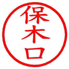 [朱肉の色]を選び、入力窓に“保木口”と入力して[生成]ボタンを押すと、印影が更新され、リンクから電子印鑑(デジタル印影)がダウンロードできます。 電子印鑑「保木口」の作り方文字表示が変なときや、文字バランスが悪いときは[字形切替]のチェックボックスでON/OFFを切り替え[生成]しなおしてください。 生成される画像は通常の印影「保木口.png」と、にじみを表現した少し太めの印影「保木口B.png」の背面透過PNG形式2種と、鮮明なPDF形式の印影「保木口.pdf」の計3種類です。 朱肉の微妙な色の違いを7色で表現しました。デフォルト(左端)は、JISが定めた朱肉の色のマンセル値(7.5R 5/14)をRGB値(217,66,54)に変換したものになっています。 「電子透かし」にチェックを入れて[生成]ボタンを押すと、タイムスタンプを電子透かしとして埋め込んだセキュアな電子印鑑が作れます。詳細は別ページの「タイムスタンプと電子透かし」でご覧ください。 保木口さんの日付印が作れます。「日付スタンプメーカー」は、社内向けの書類に利用されることの多い日付印(データ印)が無料で作れるWebアプリケーションです。中段に日付が入り、上段と下段は、ともに8文字まで文字が入ります。 ![]() 古代文字で落款印が作れます。「落款スタンプメーカー」で作品を引き立たせる落款印が作れます。